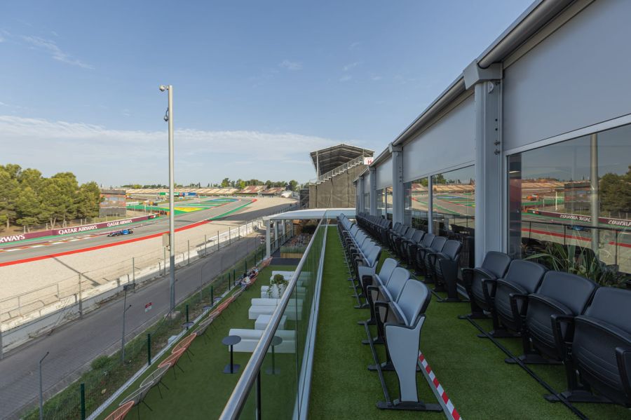 - Access to two terraces (a small one on the same level, with panoramic views of the final turn and access to the pit lane; and another on the lower level)