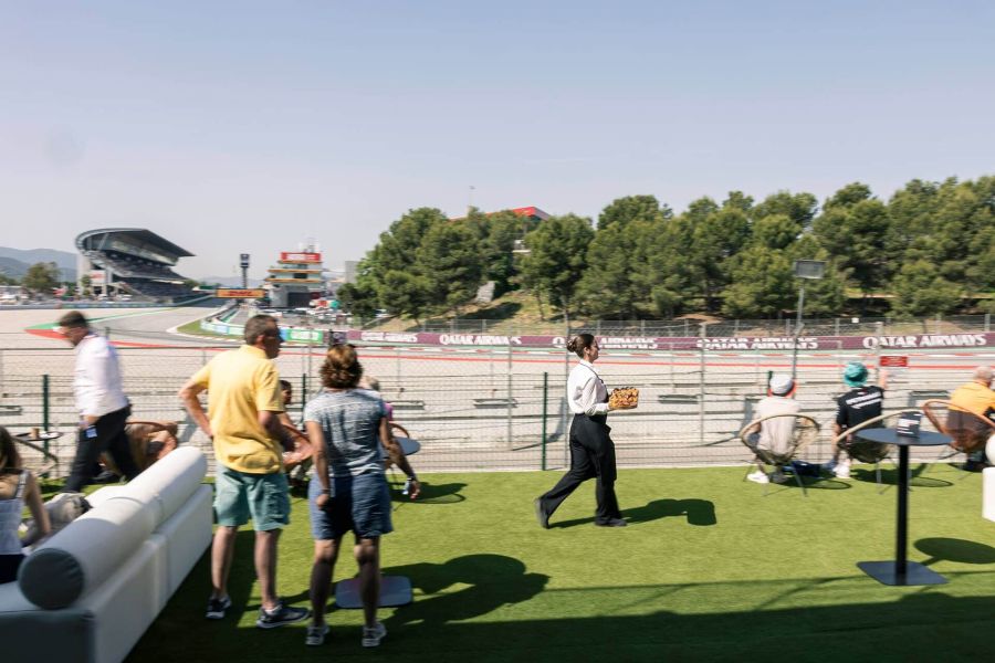 - The Garden Club is strategically located at the final turn of the Circuit de Barcelona-Catalunya, next to Grandstand H, providing privileged trackside views.