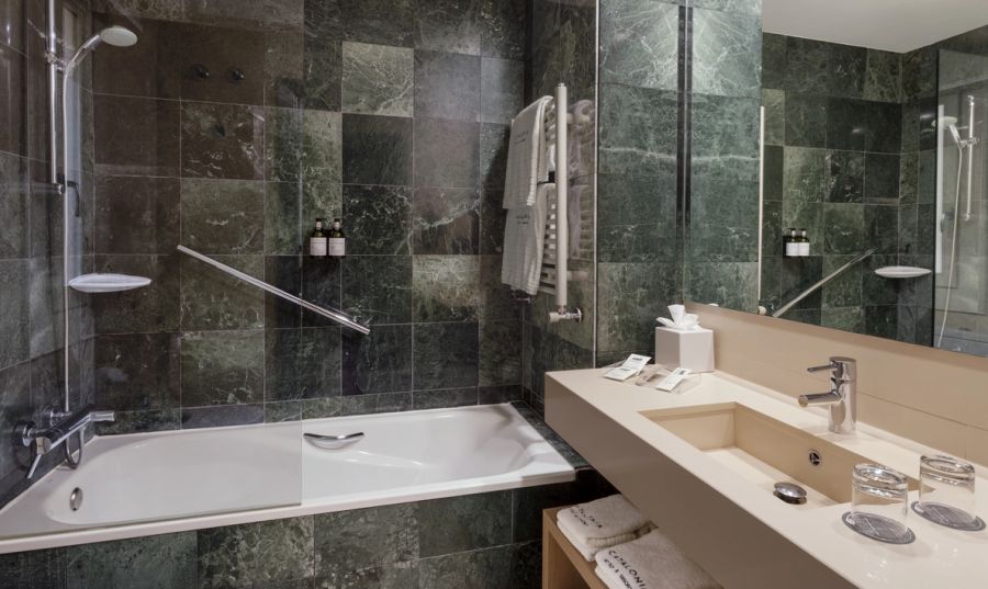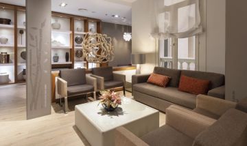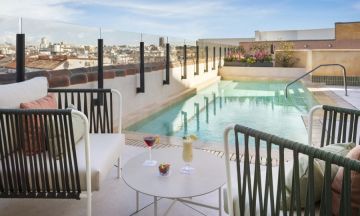 In its interior, the hotel surprises with a contemporary and sustainable decor, which includes advanced technology such as LED lighting and intelligent air conditioning systems. It has more than 170 modern rooms, some with terraces or private pool, and an impressive junior suite that preserves original frescoes and moldings. In addition, it has a new rooftop with urban pool and solarium, a spa with water circuit and massages, and a fully equipped gym, designed to offer maximum comfort and well-being.